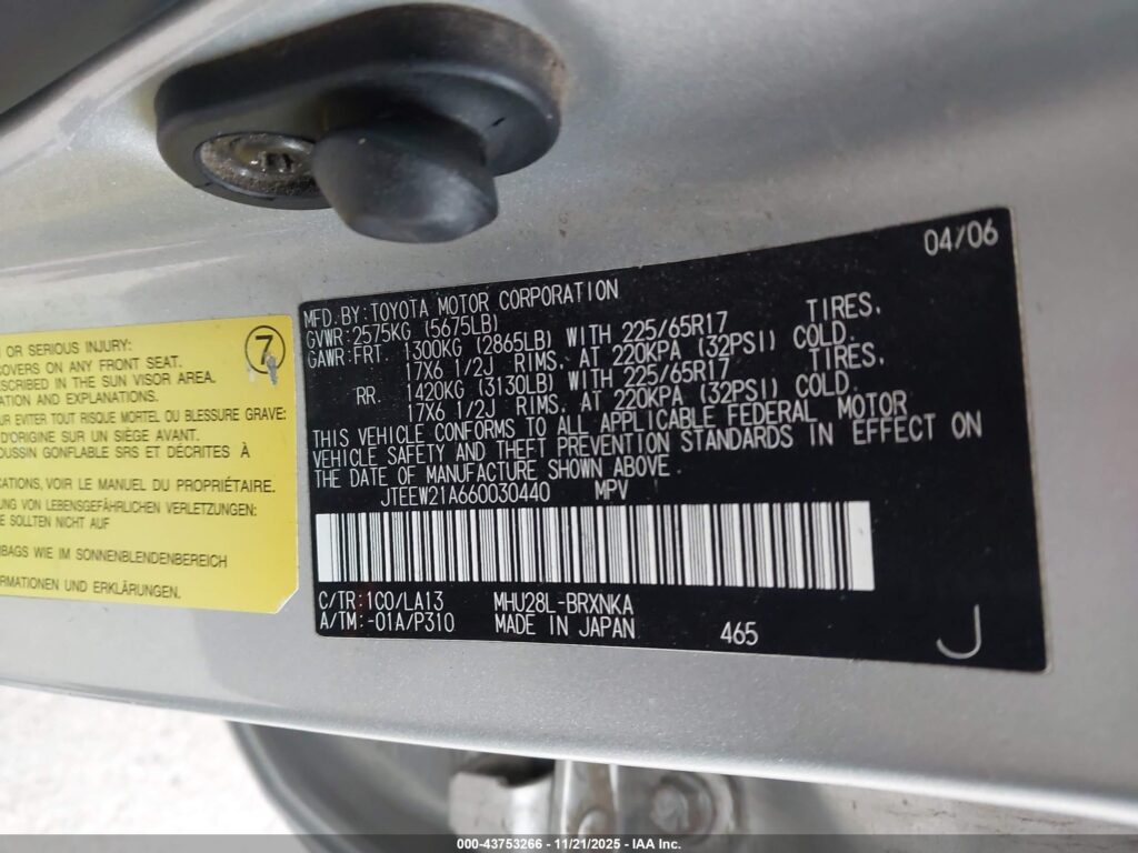 This 2006 Toyota Highlander Hybrid (Silver) comes from a major insurance auction in the USA or Canada. All information on this page is linked to the vehicle’s VIN (JTEEW21A660030440), which helps confirm where the car was listed and what condition it was in at the time of sale.