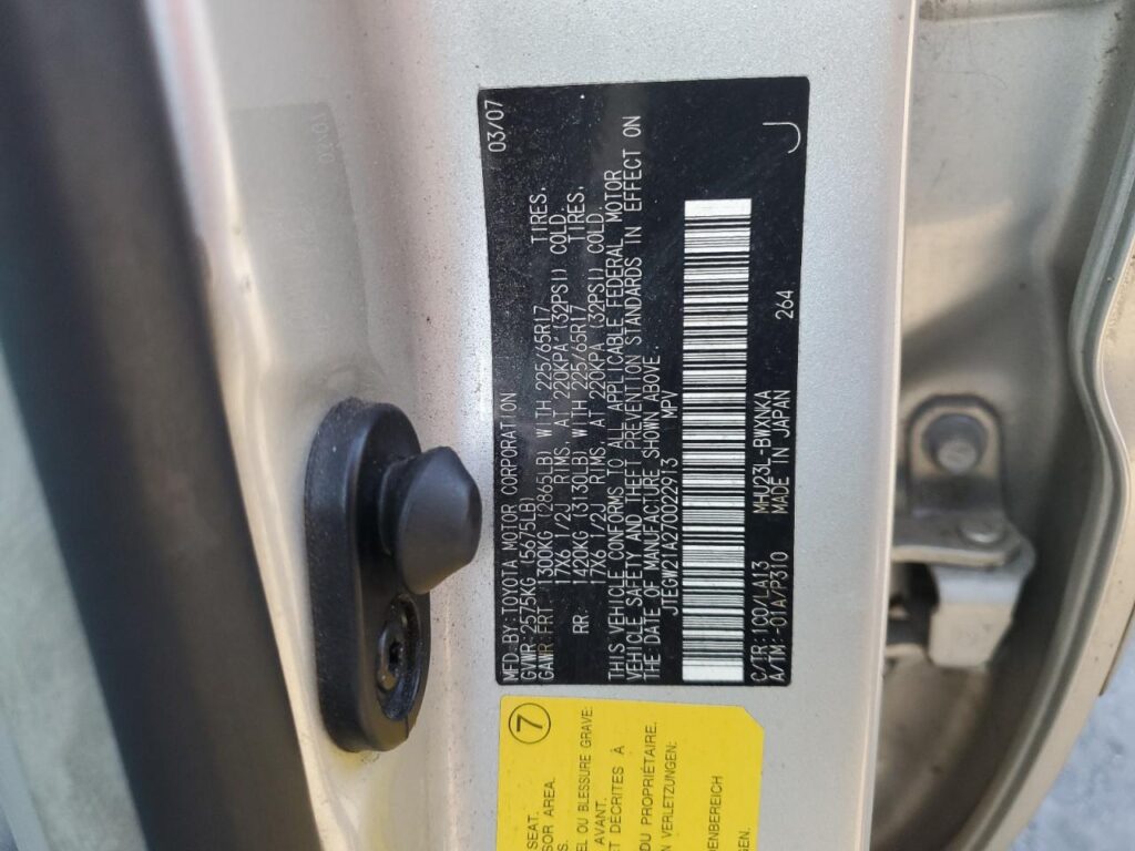 This 2007 Toyota Highlander (Silver) comes from a major insurance auction in the USA or Canada. All information on this page is linked to the vehicle’s VIN (JTEGW21A270022913), which helps confirm where the car was listed and what condition it was in at the time of sale.