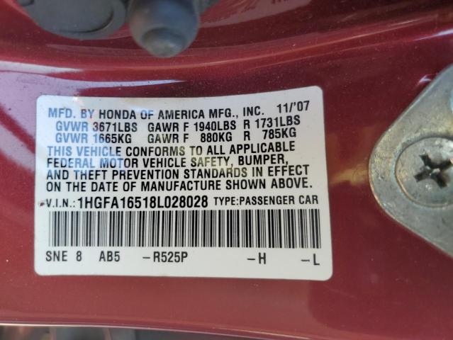 This 2008 Honda Civic (Red) comes from a major insurance auction in the USA or Canada. All information on this page is linked to the vehicle’s VIN (1HGFA16518L028028), which helps confirm where the car was listed and what condition it was in at the time of sale.