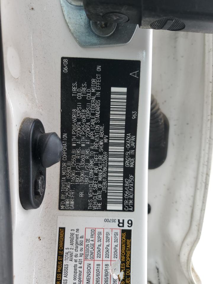 This 2008 Toyota 4Runner (White) comes from a major insurance auction in the USA or Canada. All information on this page is linked to the vehicle’s VIN (JTEBU17R78K033869), which helps confirm where the car was listed and what condition it was in at the time of sale.