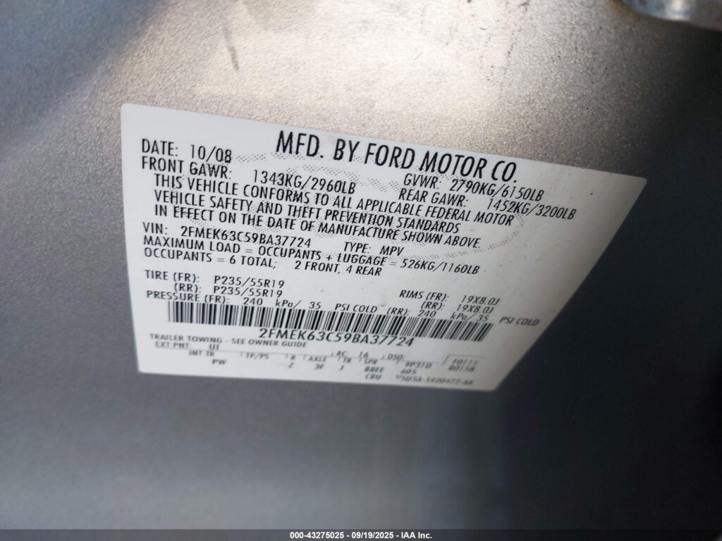 This 2009 Ford Flex (Silver) comes from a major insurance auction in the USA or Canada. All information on this page is linked to the vehicle’s VIN (2FMEK63C59BA37724), which helps confirm where the car was listed and what condition it was in at the time of sale.