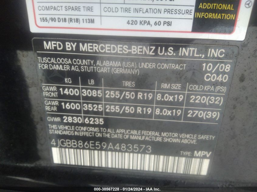 | VIN Number | 4JGBB86E59A483573 |