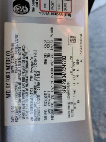 This 2010 Ford Fusion (Silver) comes from a major insurance auction in the USA or Canada. All information on this page is linked to the vehicle’s VIN (3FADP0L34AR249203), which helps confirm where the car was listed and what condition it was in at the time of sale.