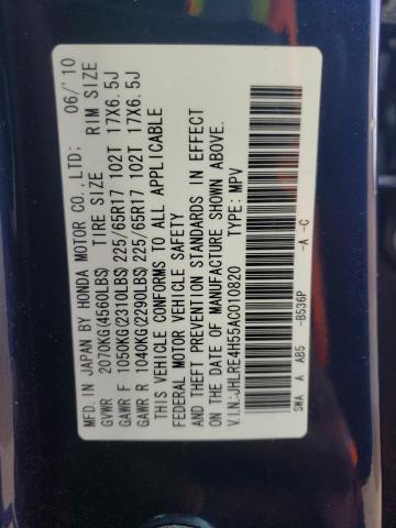 This 2010 Honda CR-V (Blue) comes from a major insurance auction in the USA or Canada. All information on this page is linked to the vehicle’s VIN (JHLRE4H55AC010820), which helps confirm where the car was listed and what condition it was in at the time of sale.