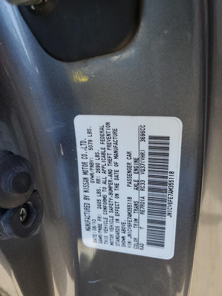 This 2010 Infiniti G37 (Grey) comes from a major insurance auction in the USA or Canada. All information on this page is linked to the vehicle’s VIN (JN1CV6FE7AM355118), which helps confirm where the car was listed and what condition it was in at the time of sale.