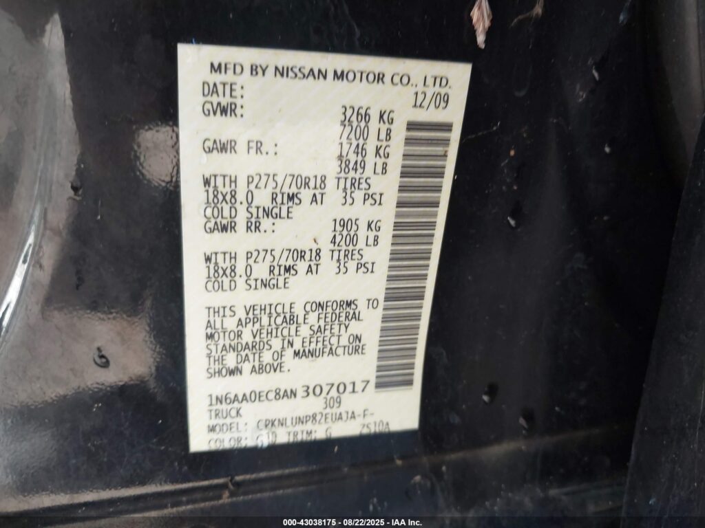 VIN Number1N6AA0EC8AN307017