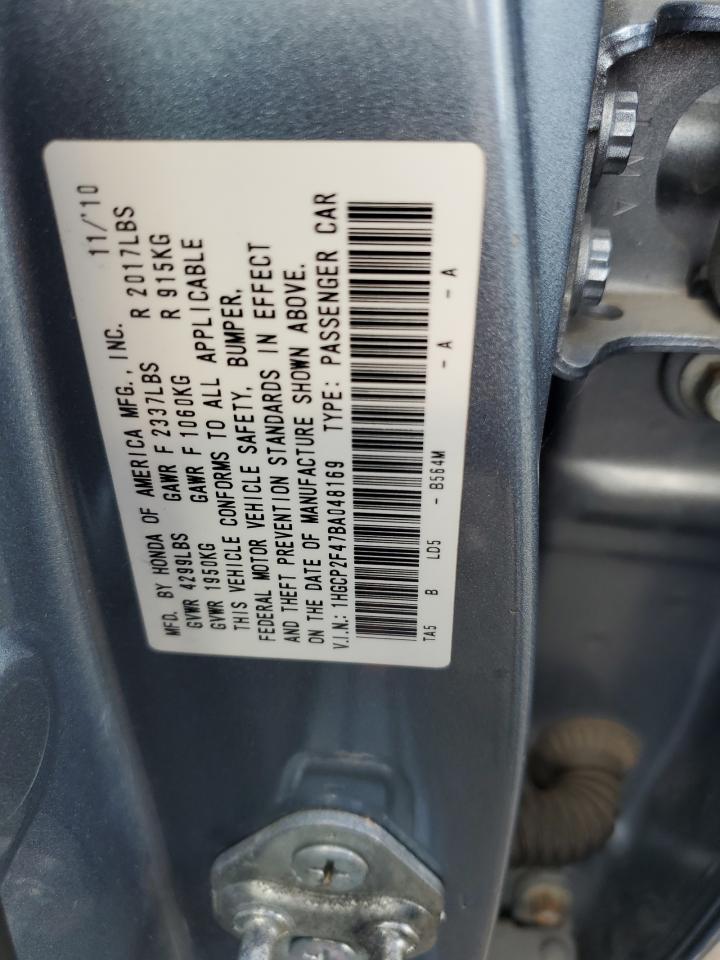 This 2011 Honda Accord (Blue) comes from a major insurance auction in the USA or Canada. All information on this page is linked to the vehicle’s VIN (1HGCP2F47BA048169), which helps confirm where the car was listed and what condition it was in at the time of sale.