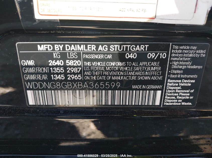 2011 MERCEDES-BENZ S 550 – WDDNG8GBXBA365599