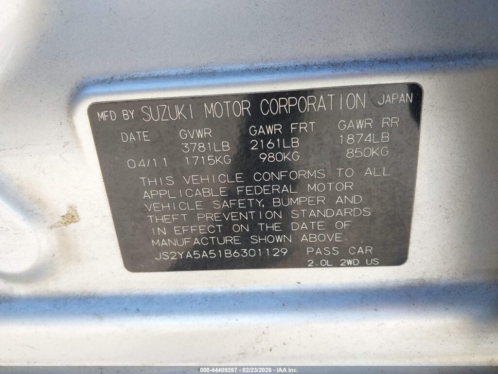 2011 Suzuki SX4 – JS2YA5A51B6301129