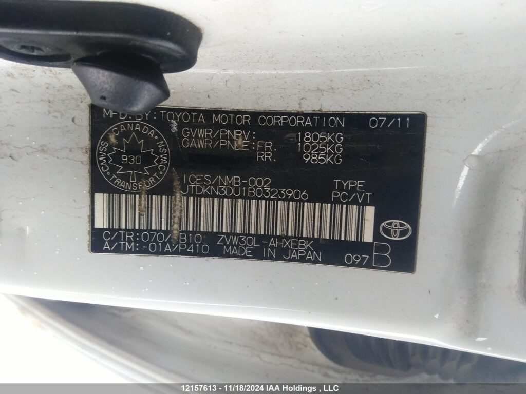| VIN Number | JTDKN3DU1B0323906 |