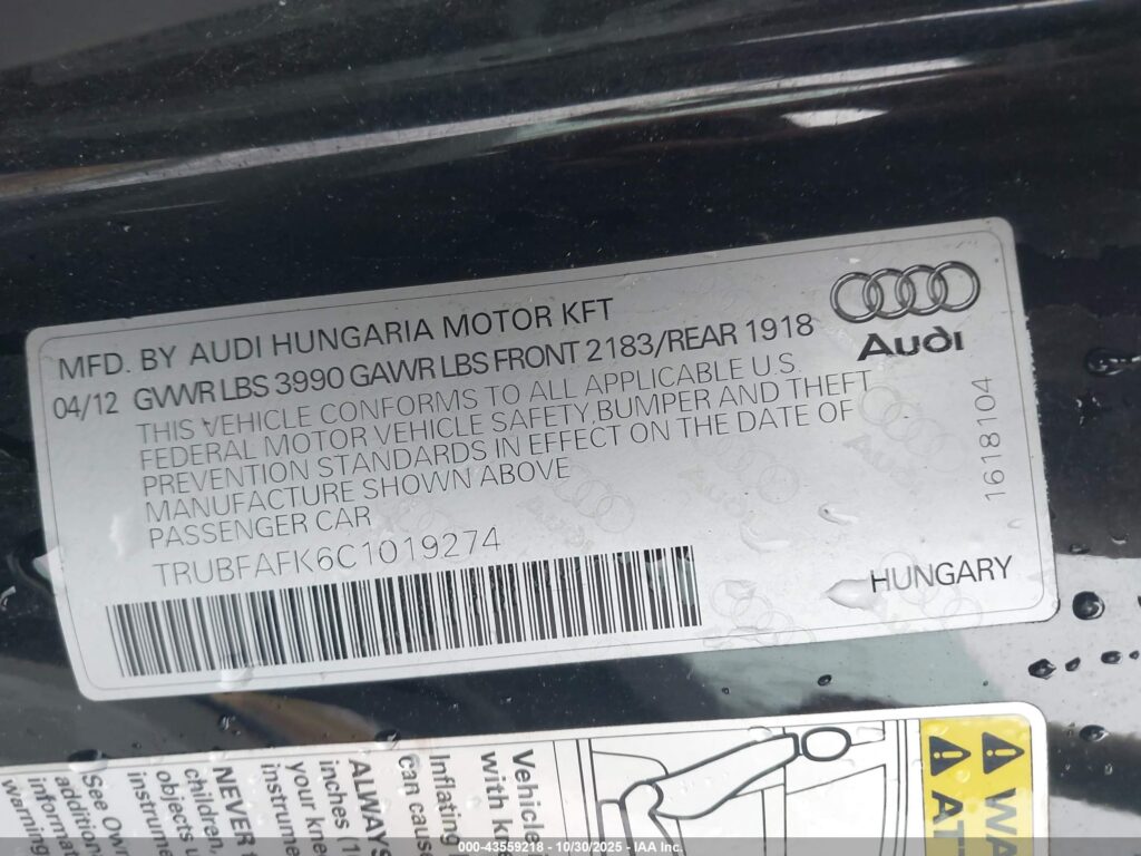 2012 Audi TT – TRUBFAFK6C1019274