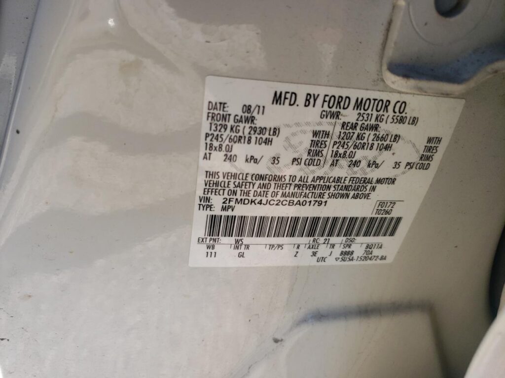 | VIN Number | 2FMDK4JC2CBA01791 |
