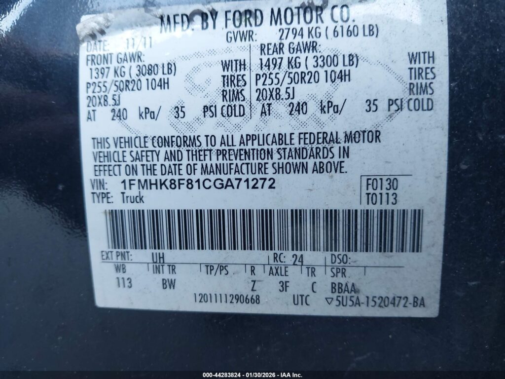 VIN Number1FMHK8F81CGA71272