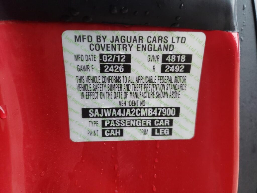 This 2012 Jaguar XKR (Red) comes from a major insurance auction in the USA or Canada. All information on this page is linked to the vehicle’s VIN (SAJWA4JA2CMB47900), which helps confirm where the car was listed and what condition it was in at the time of sale.