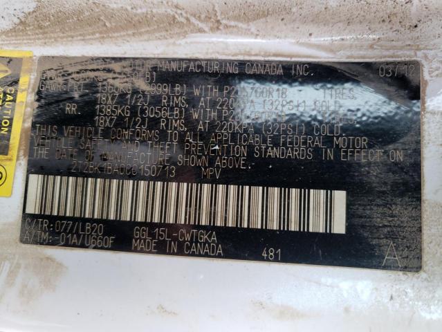 This 2012 Lexus RX 350 (White) comes from a major insurance auction in the USA or Canada. All information on this page is linked to the vehicle’s VIN (2T2BK1BA0CC150713), which helps confirm where the car was listed and what condition it was in at the time of sale.