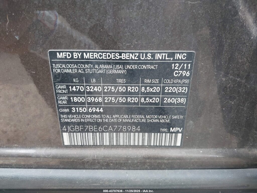 This 2012 Mercedes-Benz GL-Class (Brown) comes from a major insurance auction in the USA or Canada. All information on this page is linked to the vehicle’s VIN (4JGBF7BE6CA778984), which helps confirm where the car was listed and what condition it was in at the time of sale.