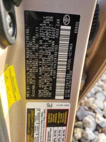 This 2012 Toyota Camry (Beige) comes from a major insurance auction in the USA or Canada. All information on this page is linked to the vehicle’s VIN (4T4BF1FK3CR166193), which helps confirm where the car was listed and what condition it was in at the time of sale.