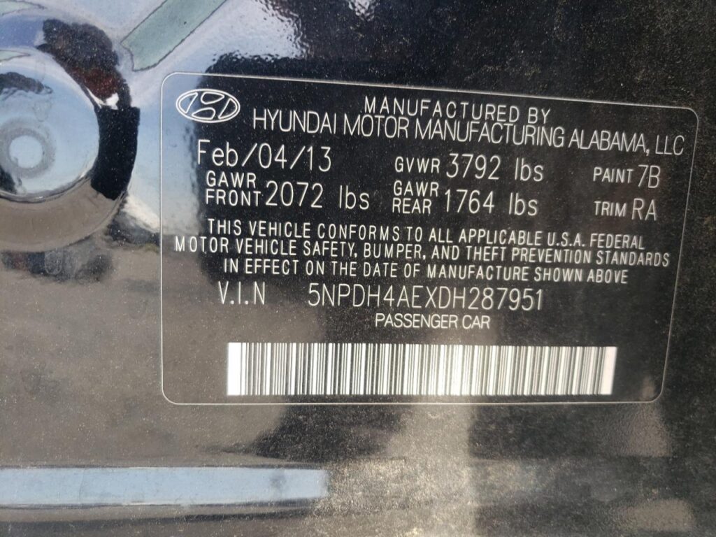 This 2013 HYUNDAI ELANTRA (BLACK) comes from a major insurance auction in the USA or Canada. All information on this page is linked to the vehicle’s VIN (5NPDH4AEXDH287951), which helps confirm where the car was listed and what condition it was in at the time of sale.