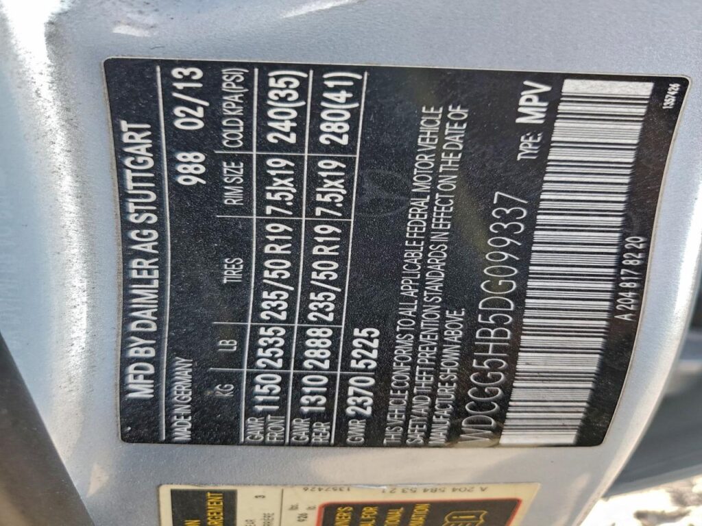 VIN NumberWDCGG5HB5DG099337