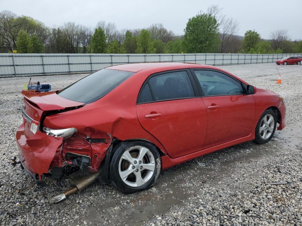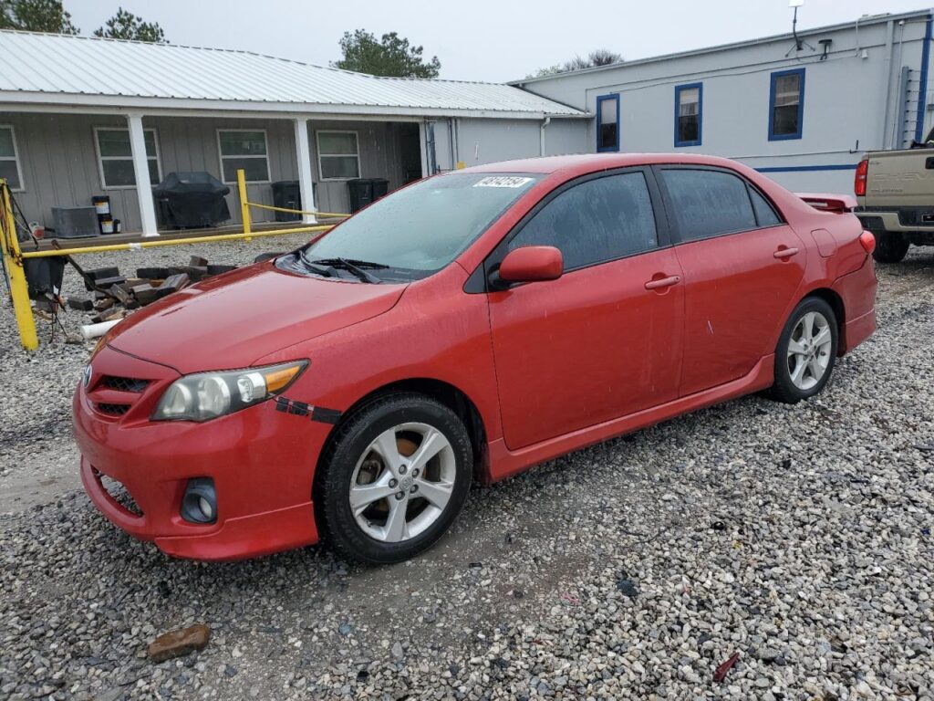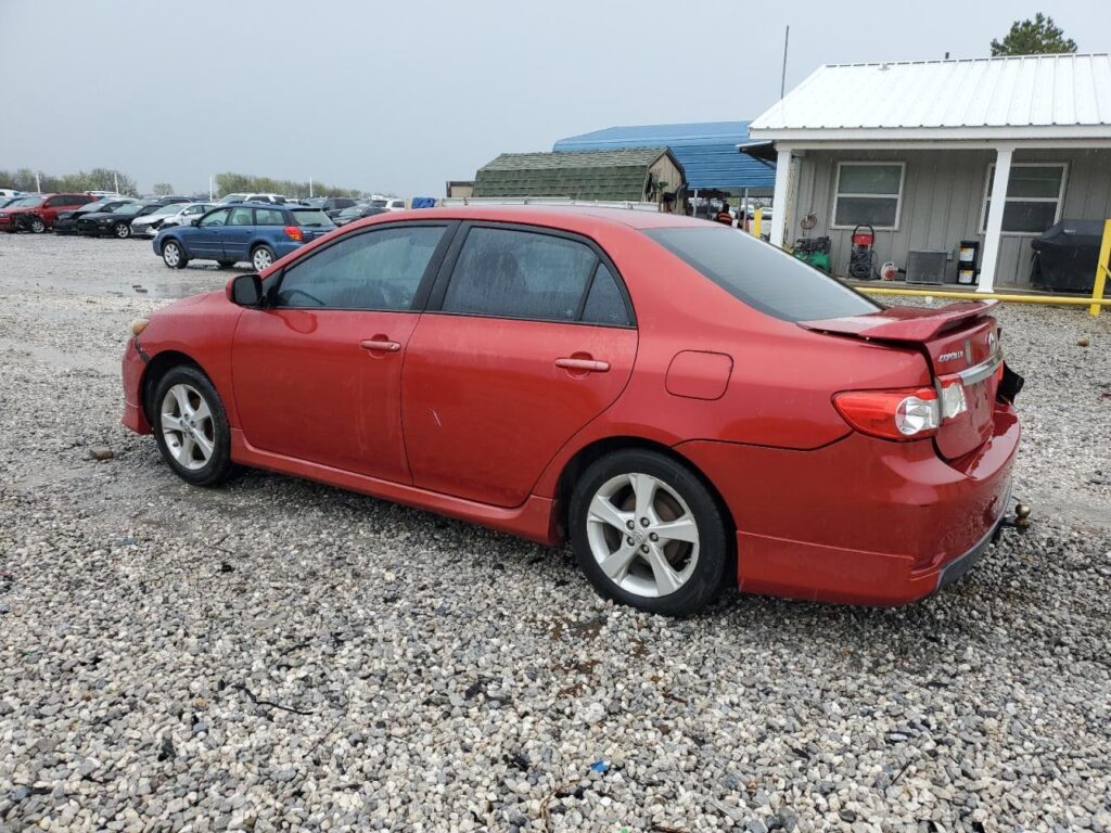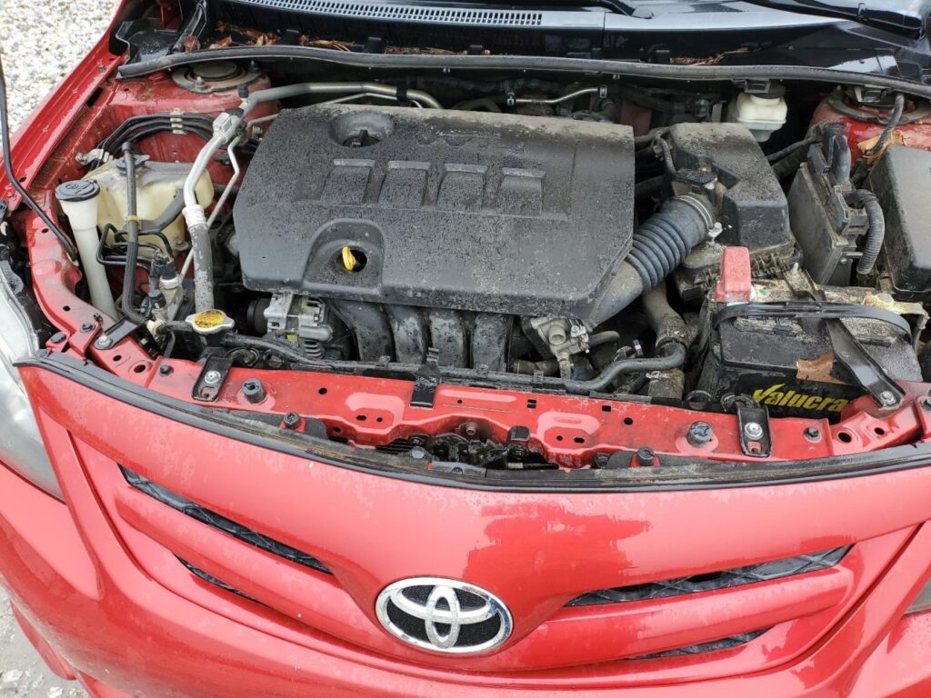 This 2013 Toyota Corolla (Red) is equipped with an engine designed to balance performance and efficiency. According to the auction listing, the vehicle had 107,695 miles at the time of sale.