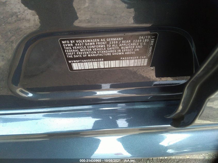 2013 VOLKSWAGEN CC – WVWBP7AN0DE564358