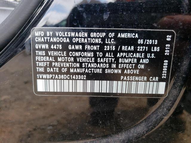 This 2013 Volkswagen Passat (Black) comes from a major insurance auction in the USA or Canada. All information on this page is linked to the vehicle’s VIN (1VWBP7A36DC143302), which helps confirm where the car was listed and what condition it was in at the time of sale.