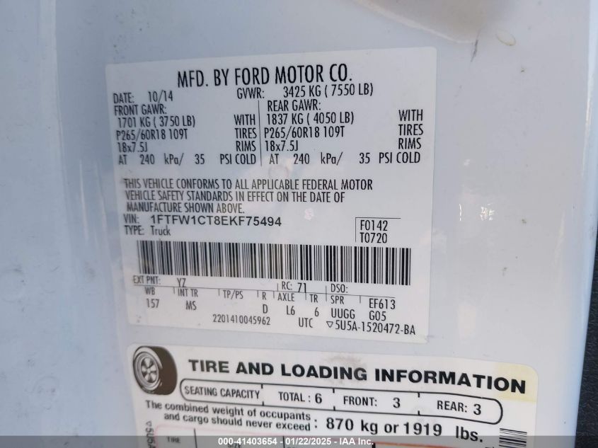 2014 FORD F-150 – 1FTFW1CT8EKF75494