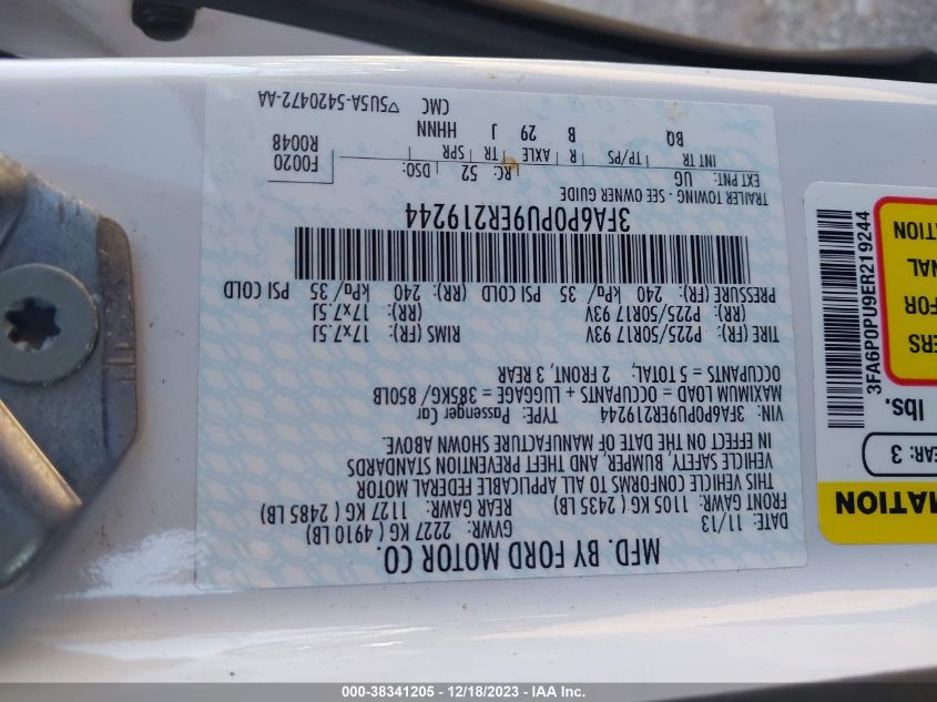 | VIN Number | 3FA6P0PU9ER219244 |