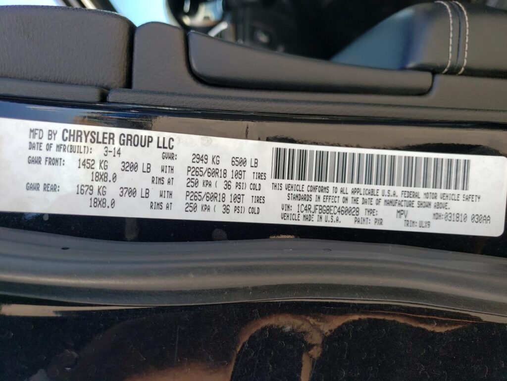 | VIN Number | 1C4RJFBG8EC460028 |