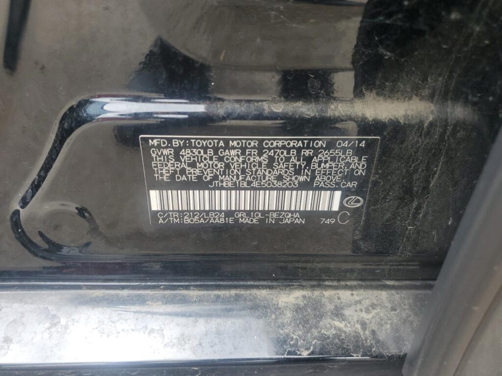 This 2014 LEXUS GS350 (BLACK) comes from a major insurance auction in the USA or Canada. All information on this page is linked to the vehicle’s VIN (JTHBE1BL4E5038203), which helps confirm where the car was listed and what condition it was in at the time of sale.