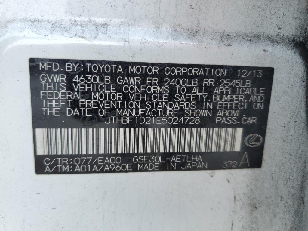 This 2014 Lexus IS 250 (White) comes from a major insurance auction in the USA or Canada. All information on this page is linked to the vehicle’s VIN (JTHBF1D21E5024728), which helps confirm where the car was listed and what condition it was in at the time of sale.