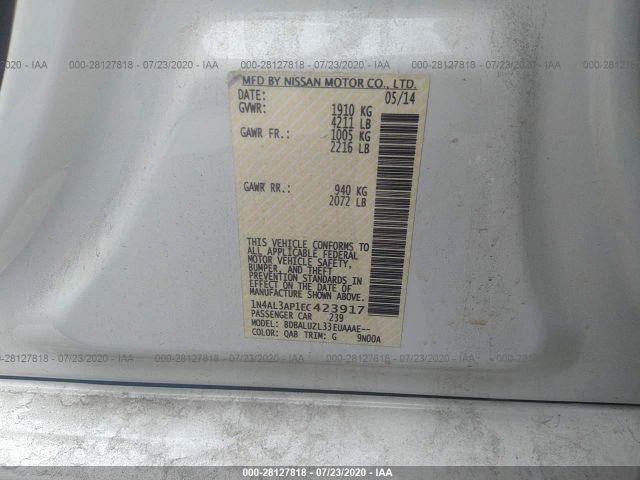VIN Number1N4AL3AP1EC423917