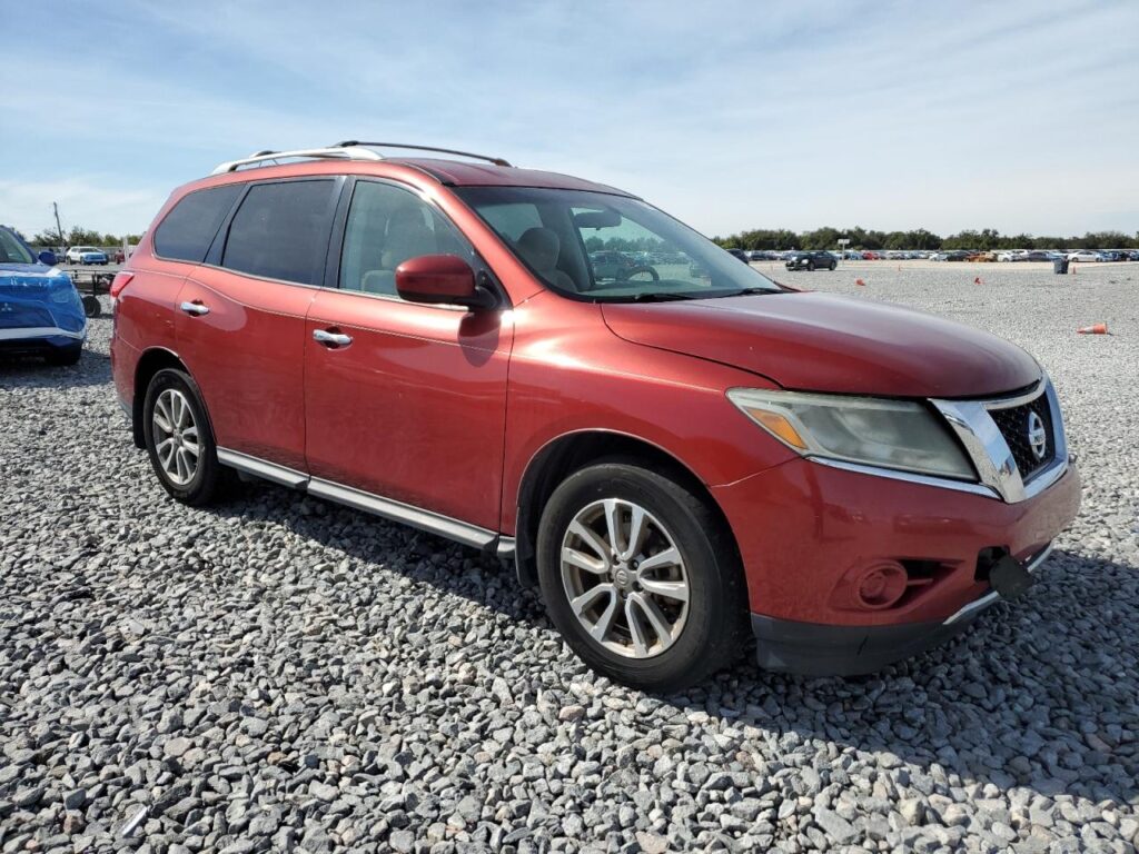 This 2014 Nissan Pathfinder (Red) is equipped with an engine designed to balance performance and efficiency. According to the auction listing, the vehicle had 105,373 miles at the time of sale.