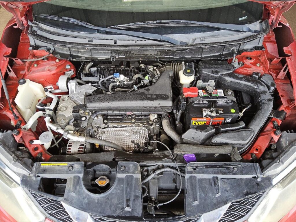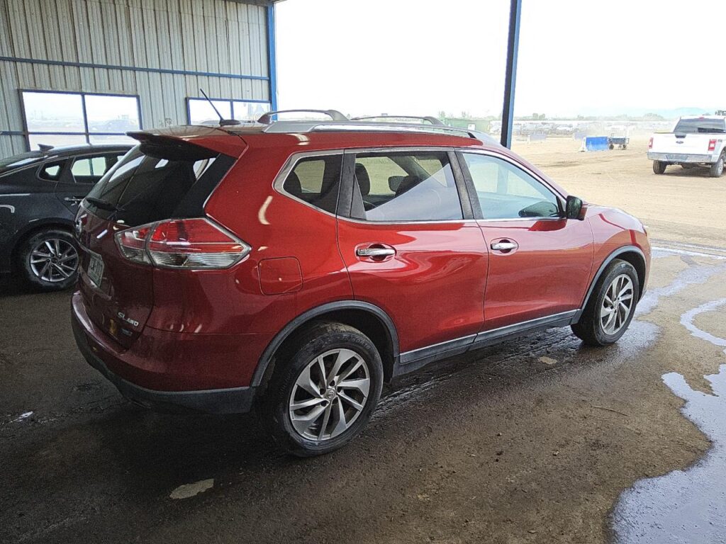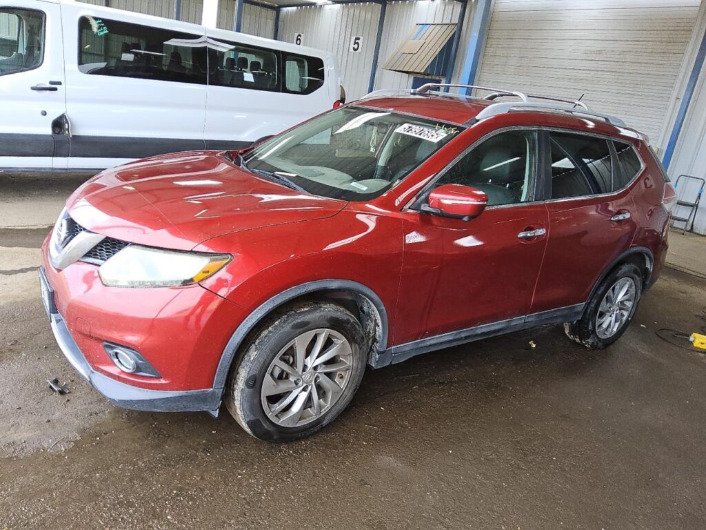 This 2014 Nissan Rogue (Red) is equipped with an engine designed to balance performance and efficiency. According to the auction listing, the vehicle had 159,775 miles at the time of sale.
