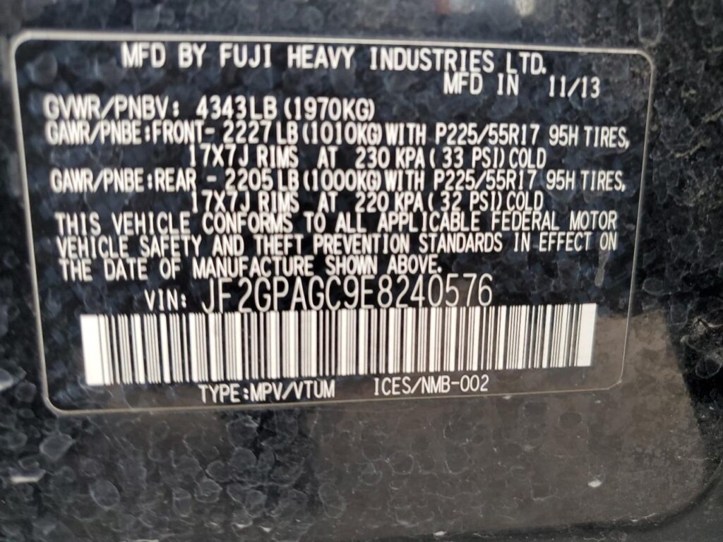 | VIN Number | JF2GPAGC9E8240576 |