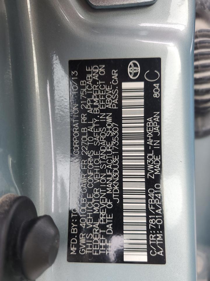 This 2014 TOYOTA PRIUS (TURQUOISE) comes from a major insurance auction in the USA or Canada. All information on this page is linked to the vehicle’s VIN (JTDKN3DU3E1735307), which helps confirm where the car was listed and what condition it was in at the time of sale.