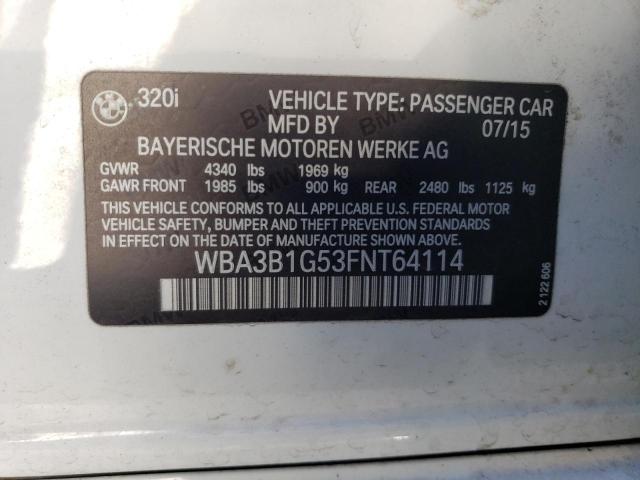 This 2015 BMW 3 SERIES (WHITE) comes from a major insurance auction in the USA or Canada. All information on this page is linked to the vehicle’s VIN (WBA3B1G53FNT64114), which helps confirm where the car was listed and what condition it was in at the time of sale.