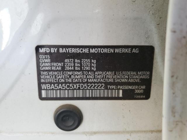 This 2015 BMW 5 SERIES (WHITE) comes from a major insurance auction in the USA or Canada. All information on this page is linked to the vehicle’s VIN (WBA5A5C5XFD522222), which helps confirm where the car was listed and what condition it was in at the time of sale.