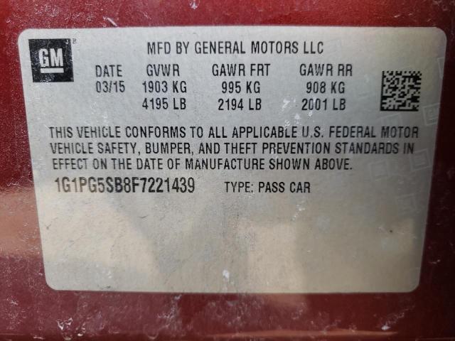 This 2015 Chevrolet Cruze (Red) comes from a major insurance auction in the USA or Canada. All information on this page is linked to the vehicle’s VIN (1G1PG5SB8F7221439), which helps confirm where the car was listed and what condition it was in at the time of sale.