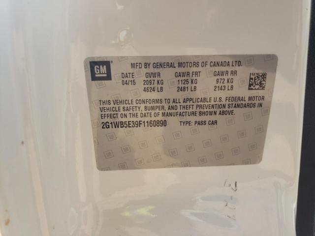 This 2015 Chevrolet Impala (White) comes from a major insurance auction in the USA or Canada. All information on this page is linked to the vehicle’s VIN (2G1WB5E39F1160890), which helps confirm where the car was listed and what condition it was in at the time of sale.
