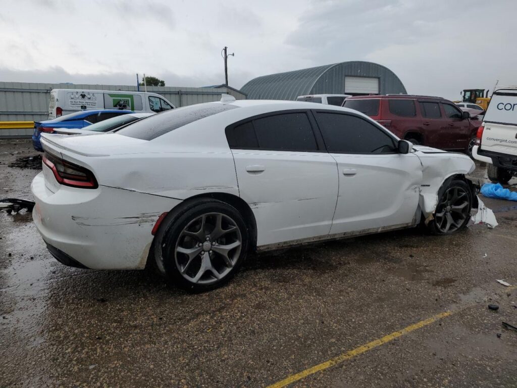 This 2015 Dodge Charger (White) is equipped with an engine designed to balance performance and efficiency. According to the auction listing, the vehicle had 147,118 miles at the time of sale.