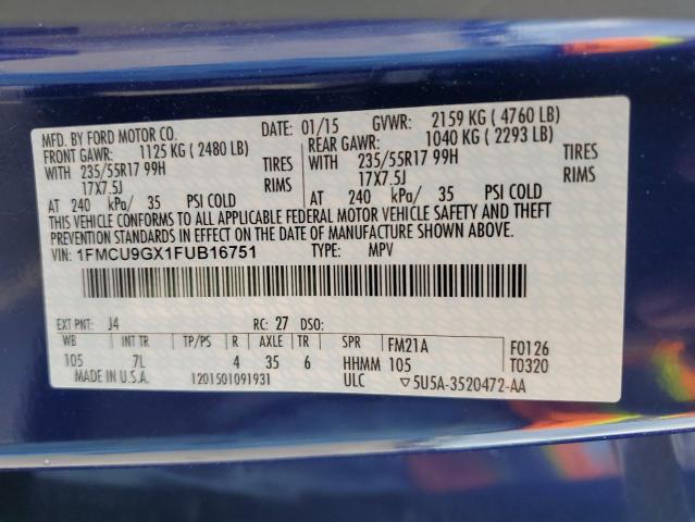 This 2015 FORD ESCAPE (BLUE) comes from a major insurance auction in the USA or Canada. All information on this page is linked to the vehicle’s VIN (1FMCU9GX1FUB16751), which helps confirm where the car was listed and what condition it was in at the time of sale.