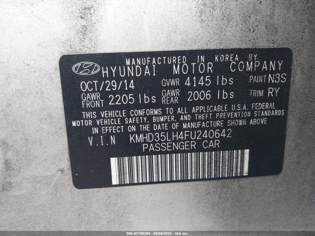 | VIN Number | KMHD35LH4FU240642 |