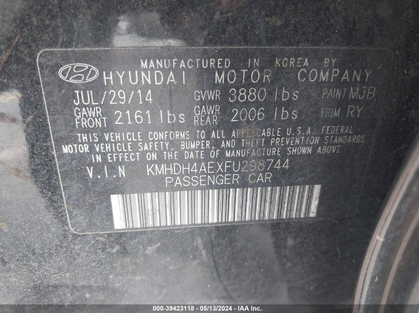 2015 HYUNDAI ELANTRA – KMHDH4AEXFU298744