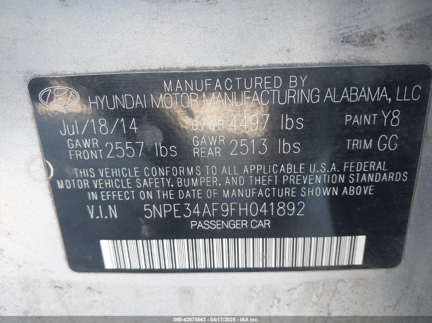 2015 HYUNDAI SONATA – 5NPE34AF9FH041892