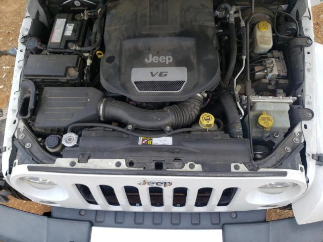 This 2015 Jeep Wrangler (White) is equipped with an engine designed to balance performance and efficiency. According to the auction listing, the vehicle had 73,436 miles at the time of sale.
