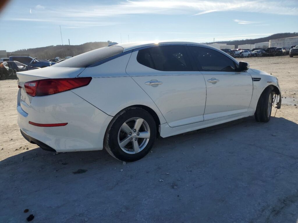 This 2015 Kia Optima (White) is equipped with an engine designed to balance performance and efficiency. According to the auction listing, the vehicle had 76,844 miles at the time of sale.