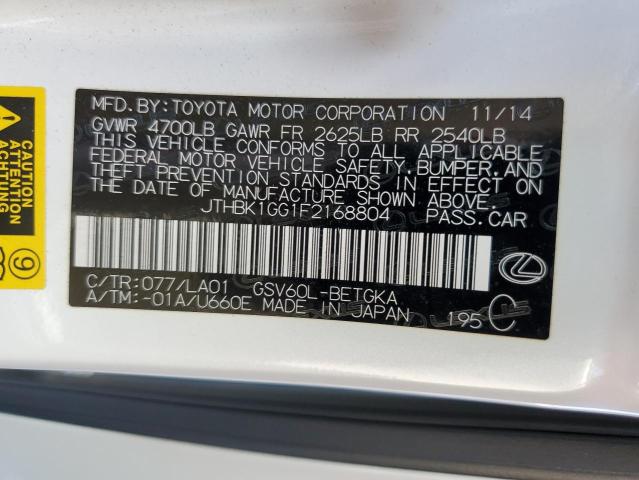 This 2015 Lexus ES 350 (White) comes from a major insurance auction in the USA or Canada. All information on this page is linked to the vehicle’s VIN (JTHBK1GG1F2168804), which helps confirm where the car was listed and what condition it was in at the time of sale.
