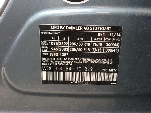 This 2015 Mercedes-Benz GLA-Class (Blue) comes from a major insurance auction in the USA or Canada. All information on this page is linked to the vehicle’s VIN (WDCTG4GB4FJ101319), which helps confirm where the car was listed and what condition it was in at the time of sale.
