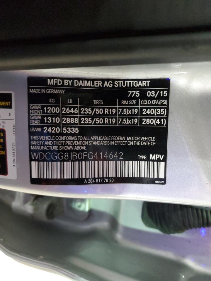 This 2015 MERCEDES-BENZ GLK-CLASS (SILVER) comes from a major insurance auction in the USA or Canada. All information on this page is linked to the vehicle’s VIN (WDCGG8JB0FG414642), which helps confirm where the car was listed and what condition it was in at the time of sale.